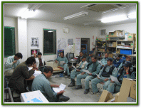 安全且つ迅速に工事が進むよう、現場の職人さんと工事・営業のスタッフがミーティングを行います。